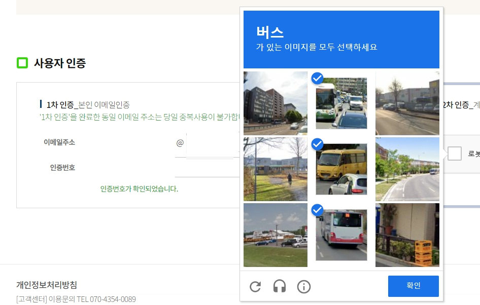 2차로 로봇이 아닌지 체크 하면 인증이 완료됩니다.