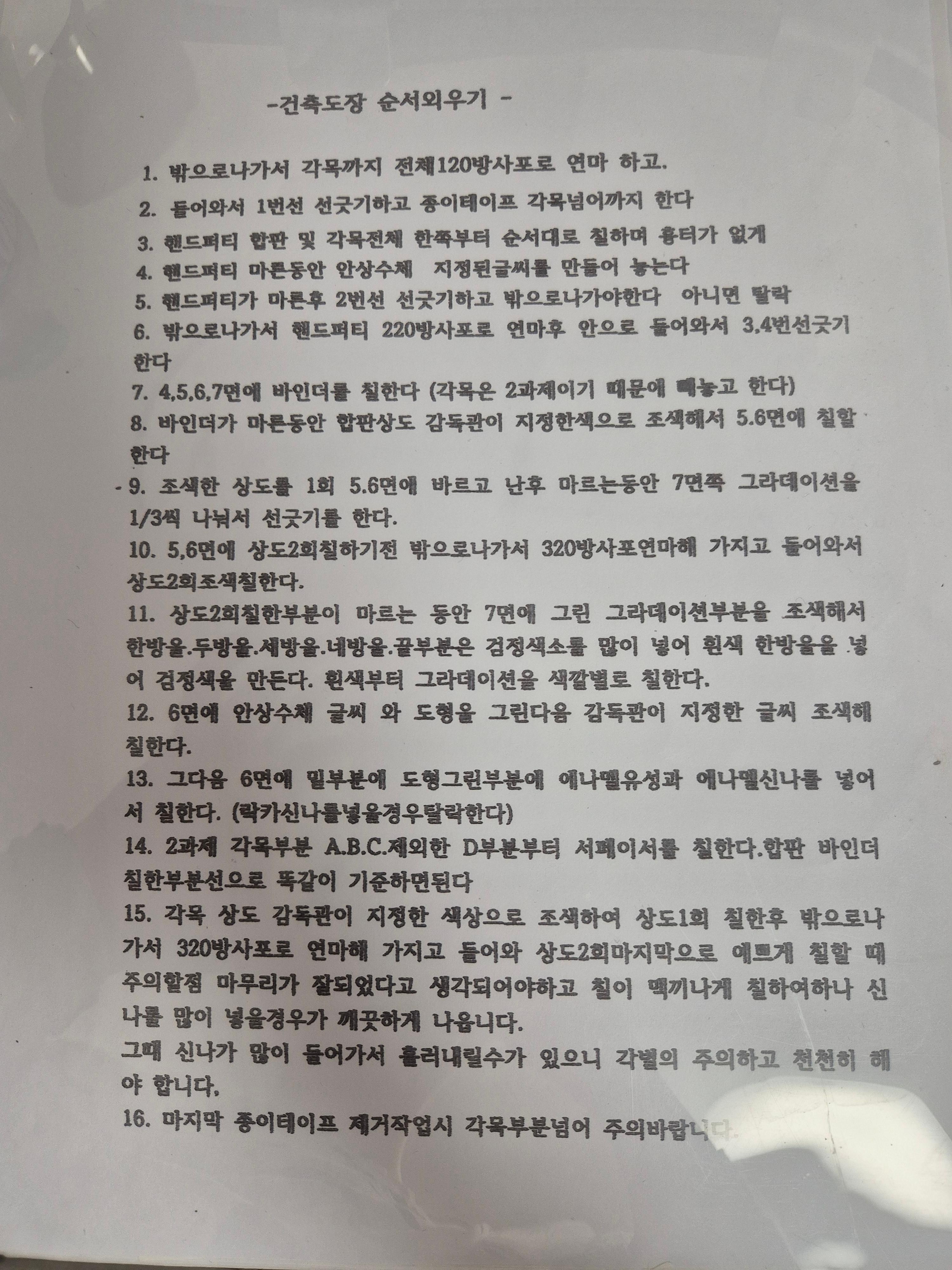 시험 준비는 정말 중요해요. 저는 교육이 끝난 후에도 집에서 계속 연습했어요. 머릿속으로 시뮬레이션을 하면서 도장 작업을 상상해보기도 했고, 실제로 붓을 사용해 연습을 많이 했습니다. 유튜브에서 다양한 도장 기법을 참고하면서 부족한 부분을 보완했어요. 이렇게 준비하니 자신감이 생기더라고요.