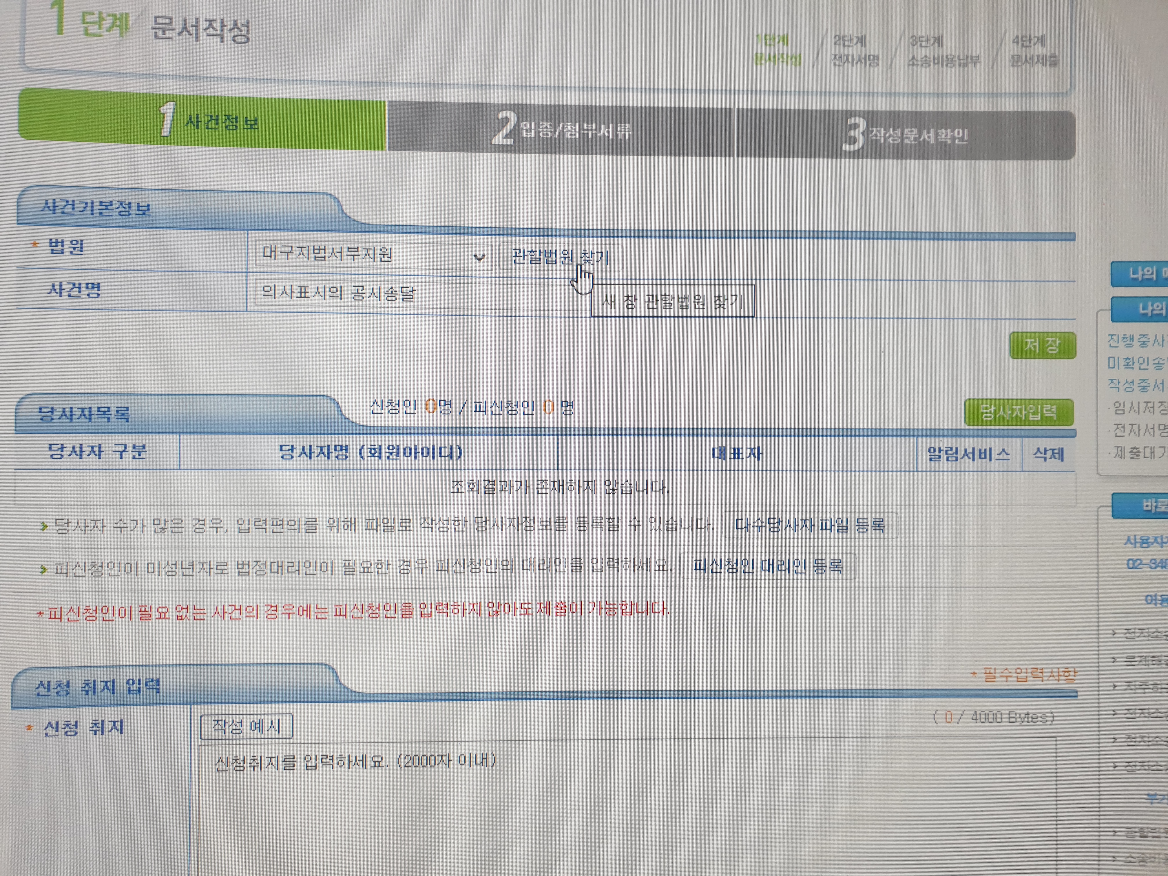 3번째 의사표시 공시송달을 제출하는 걸 끝냈습니다.