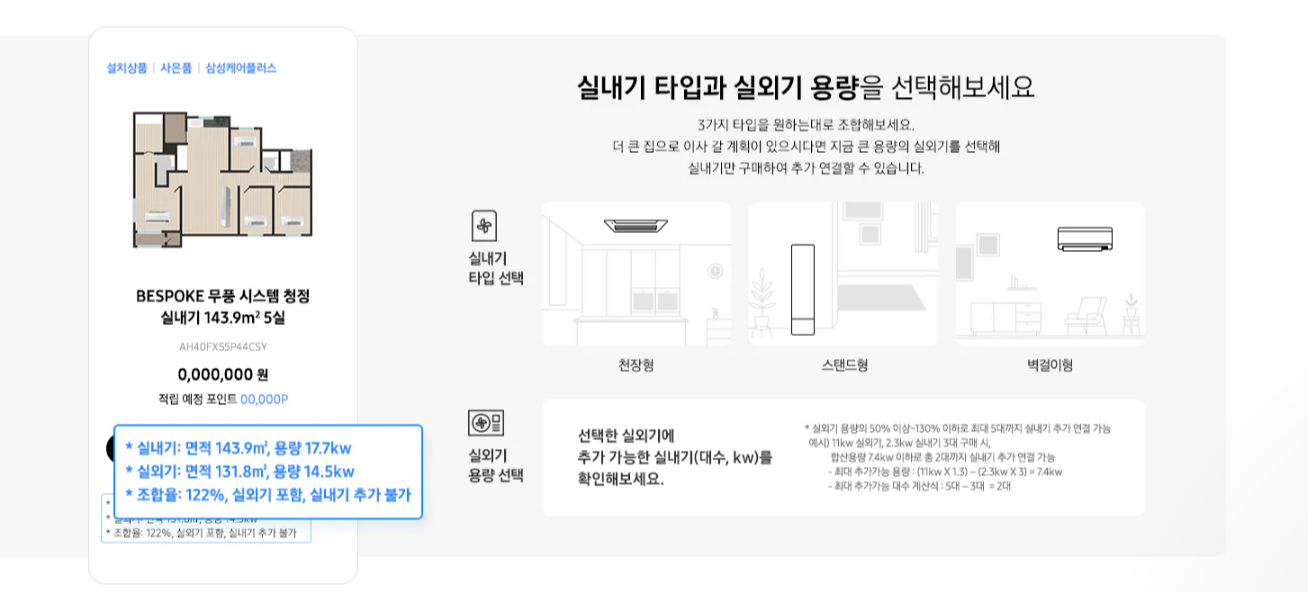 - 삼성 BESPOKE 무풍에어컨 – 다양한 컬러와 AI 기능 제공
