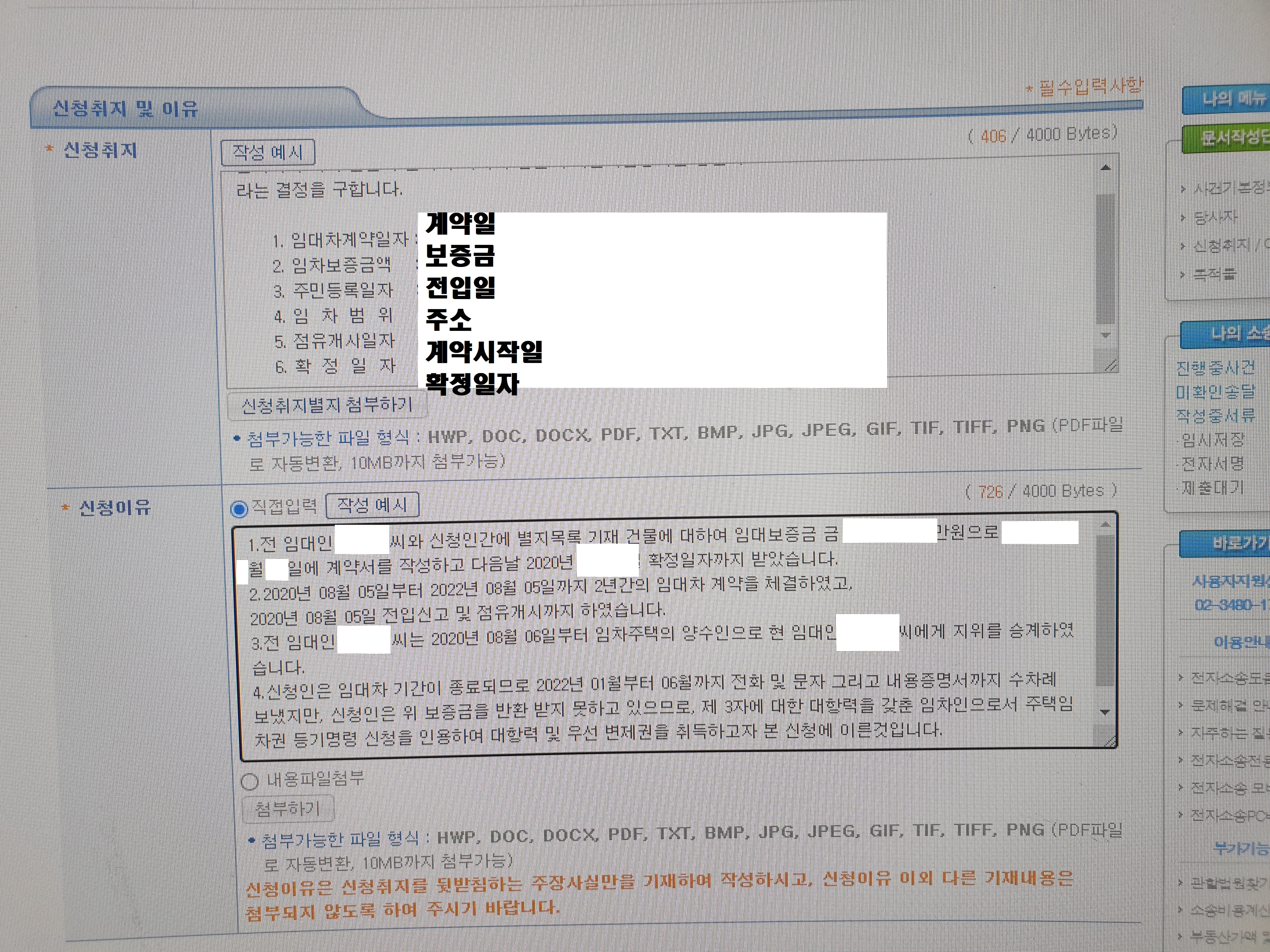 두번째 사진 같은 경우 임대차권 등기명령신청을 한달 전 부터 준비하다보니