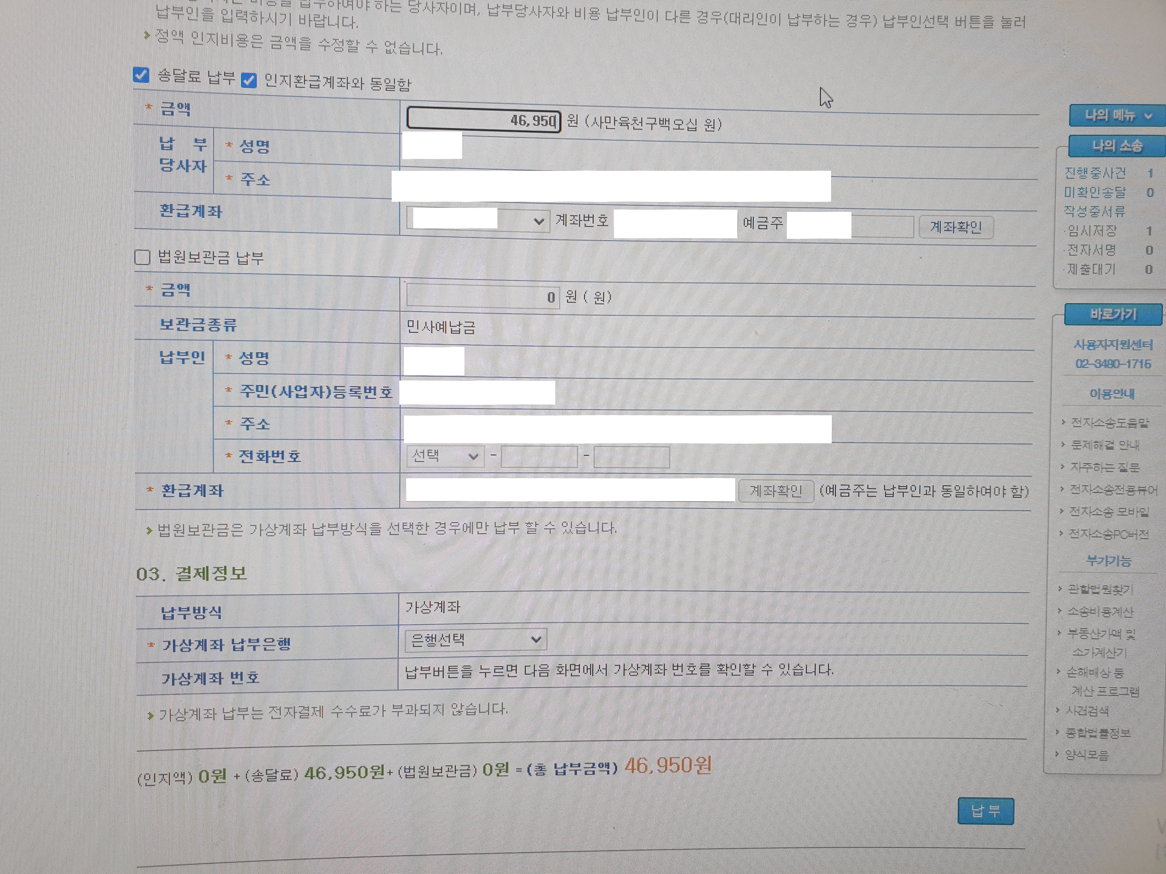 내돈받기위해 법정 서류를 작성하고 법원에 제출비용도 내야하고