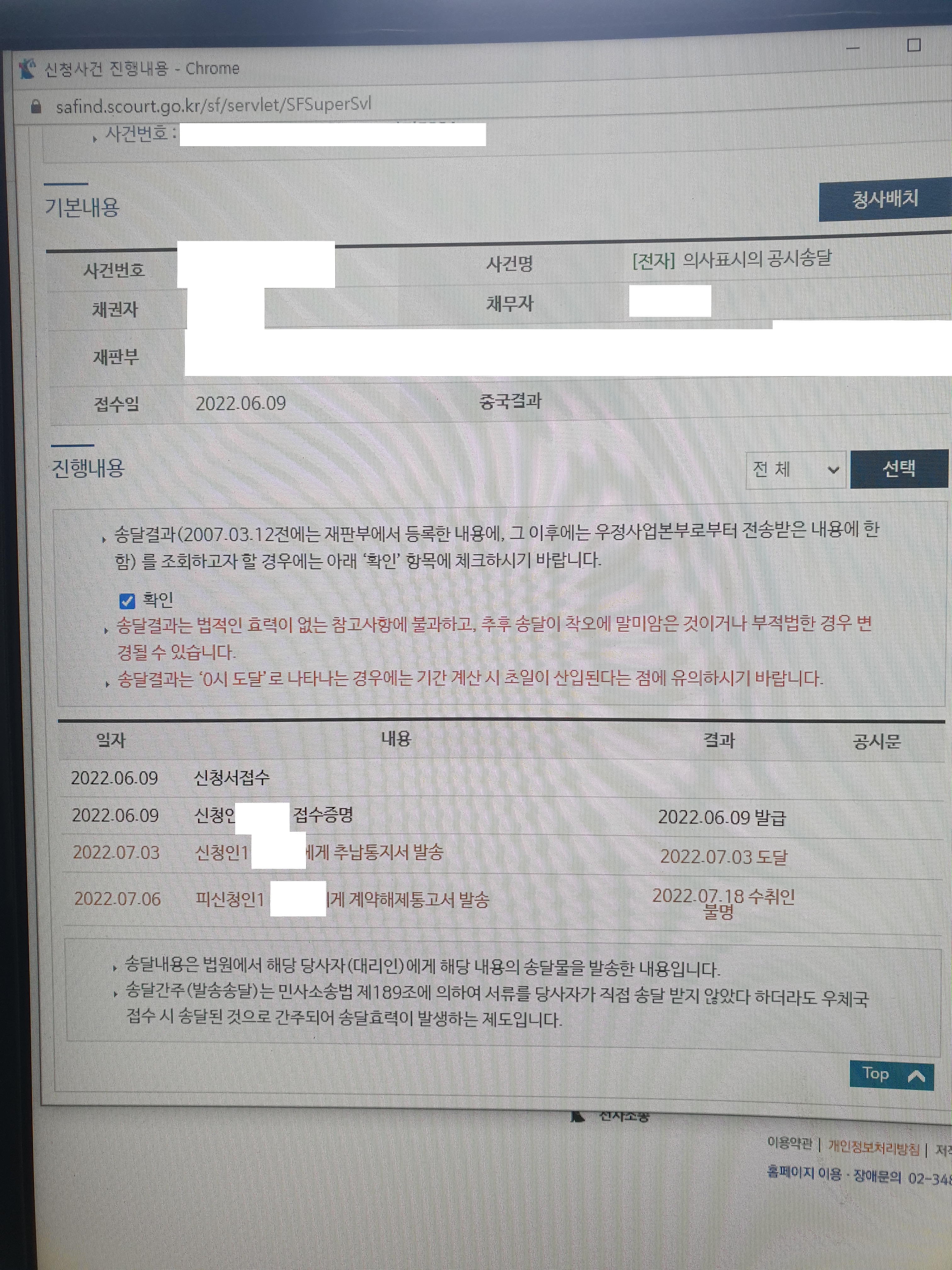 현재까지 공시송달 진행사항 입니다.
