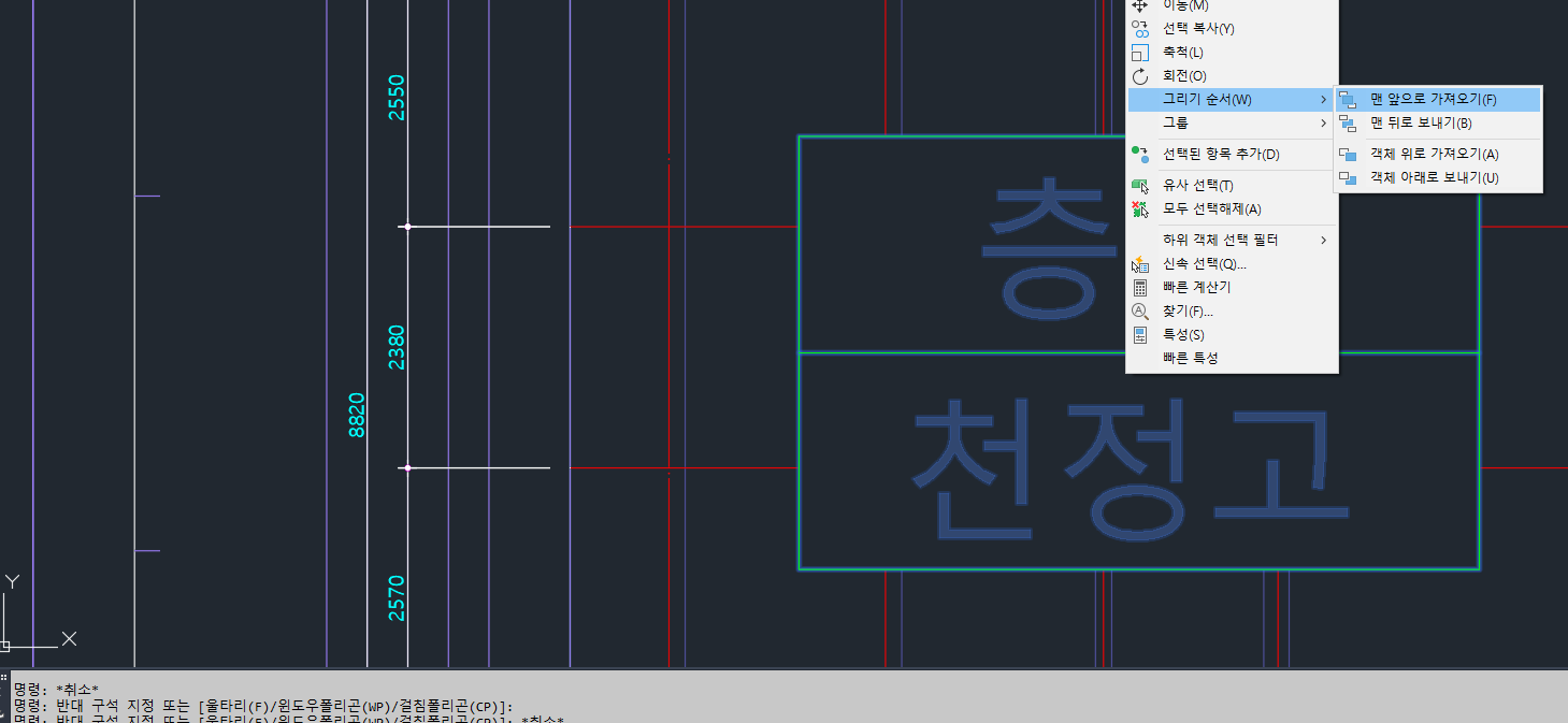 STEP.3 오른쪽 버튼 클릭 후 [그리기순서] ▶ [맨 앞으로 가져오기]
