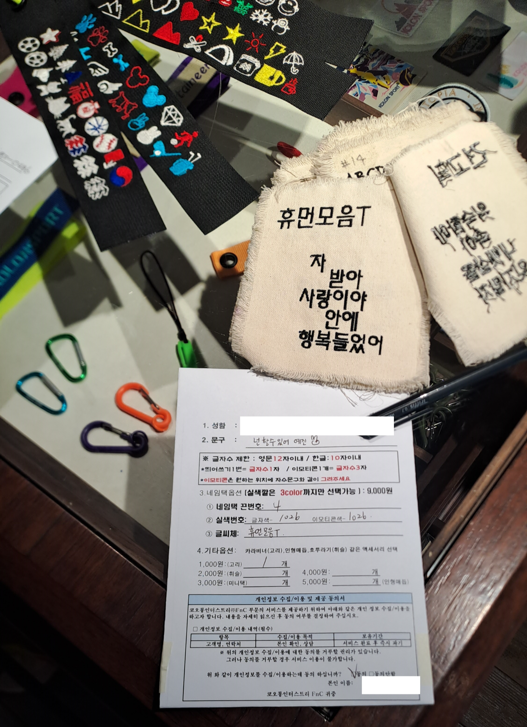 9시 40분 솟솟618 네임택 (10,000원) 선택과 고민의 순간들