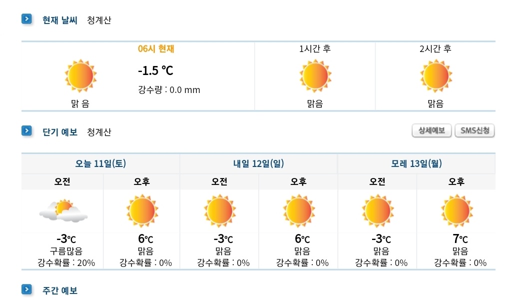 위 사이트는 특정 지역의 산에 있는 날씨를 소개하는 사이트이다. 이 정보를 통해 날씨를 보고