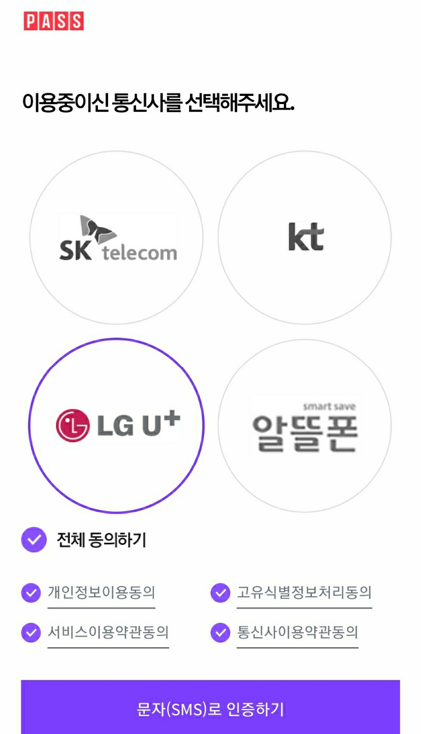 ⑤ 핸드폰 개인 인증을 진행 후, 신청인 이름및 주민등록 뒷자리 번호를 기입합니다.
