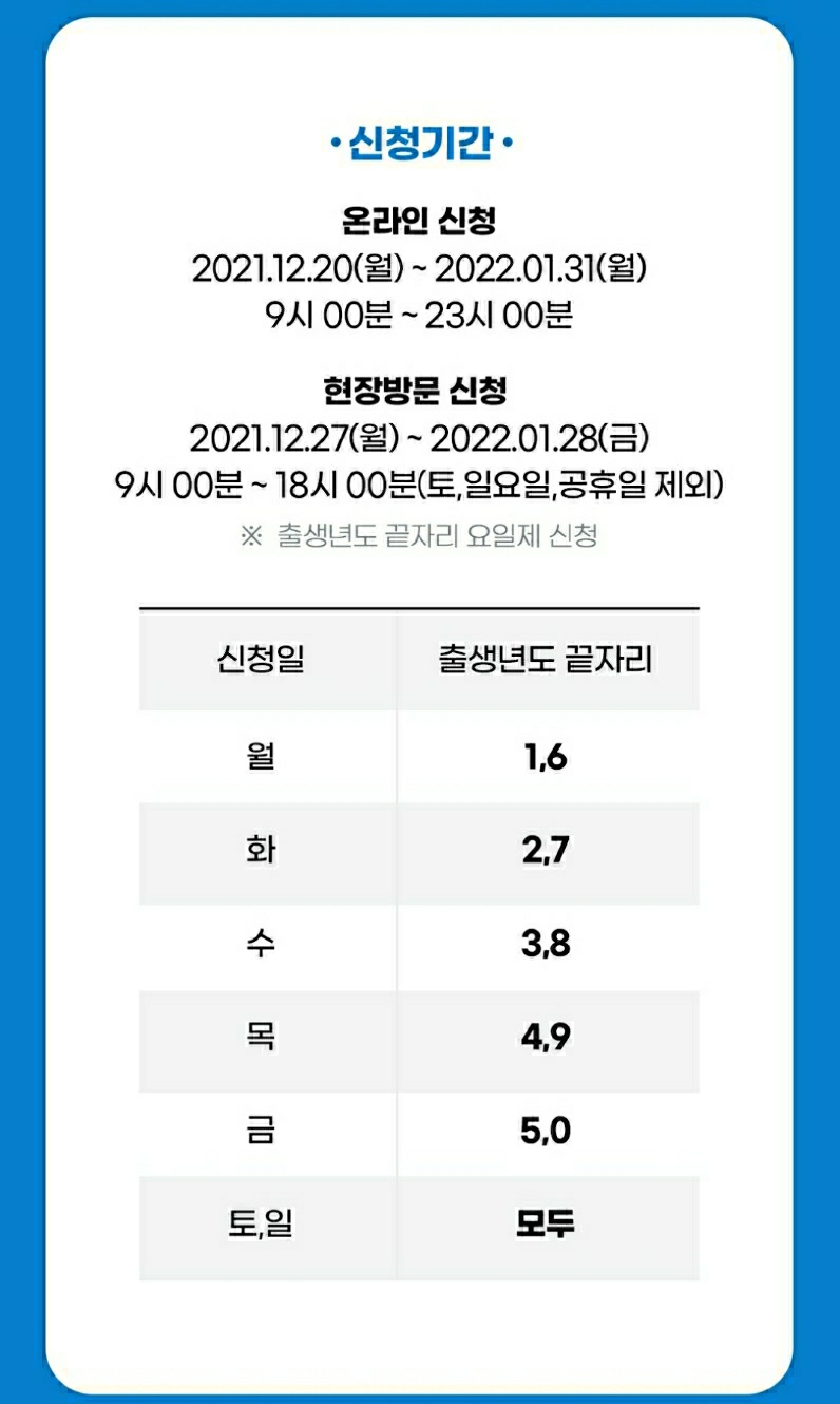 <일상회복지원금 온라인신청및 현장방문 신청 기간및 시간 안내>