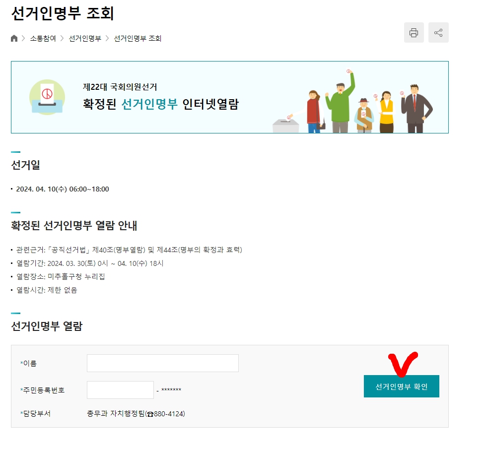 위의 정보를 참고하여 미리 투표소를 확인하고, 선거인명부도 열람해보세요.