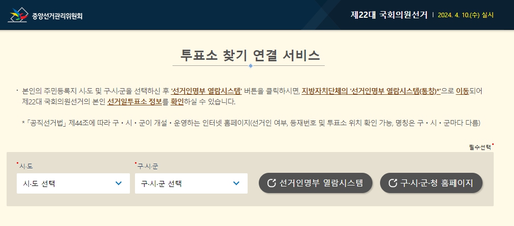 중앙선거관리위원회 - 투표소 찾기 연결 서비스 (옛, 내 투표소 찾기)