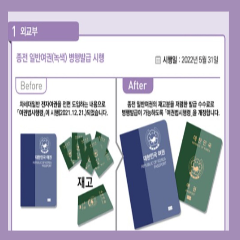 차세대 전자여권과 병행하여 종전 일반여권(녹색)을 발급한느 것으로, 종전 일반여권(녹색)의 재고를 활용해