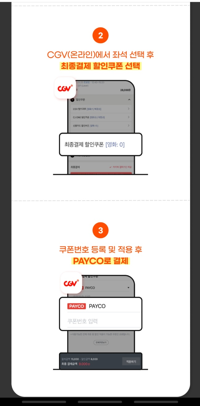 영화관 예매시 "최종결제할인쿠폰"에 페이코 할인쿠폰번호를 넣으면 9000원에 영화관람가능합니다~