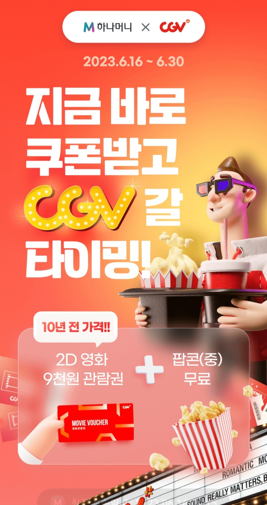 하나머니에서도 6월말까지 CGV랑 이벤트를 진행한다고 합니다.
