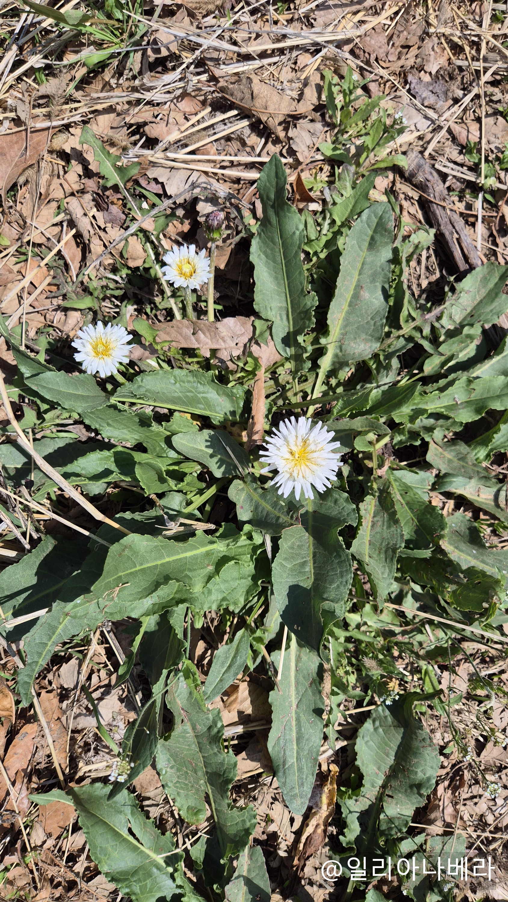 우연히 시골에서 하얀민들레를 발견했다.