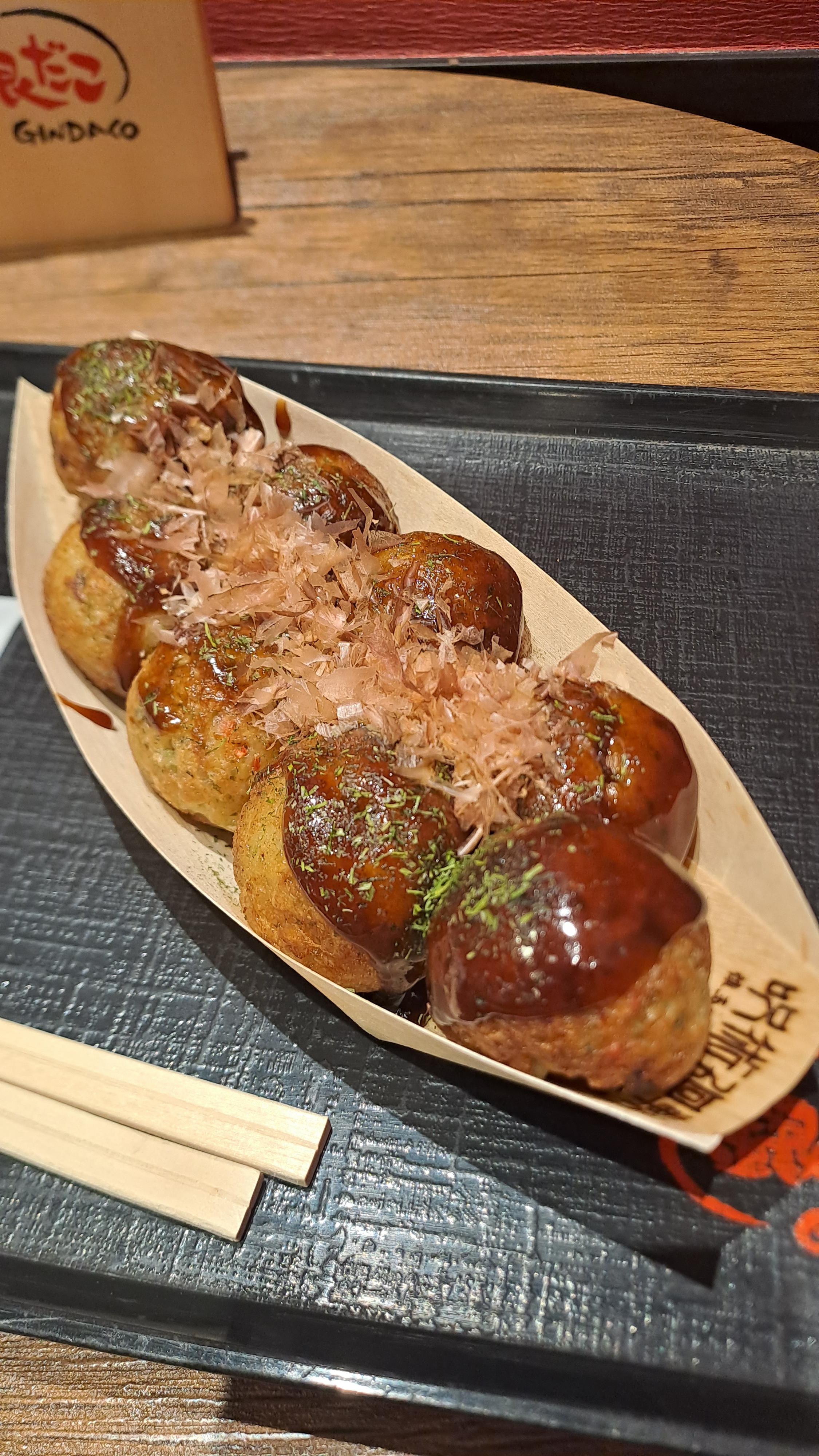 스테이크를 먹고 후식으로 타코야끼를 먹었다.