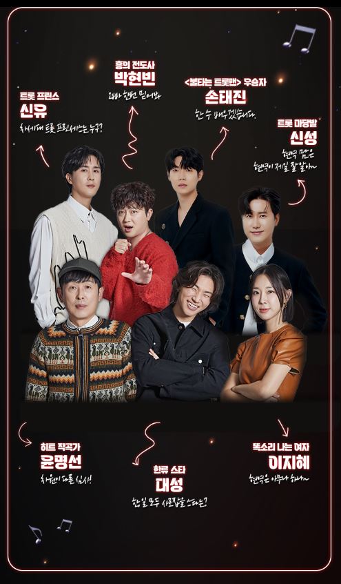 이십사년 '한일트롯가왕전'에 출전할 대한민국 대표 최정상 여성 현역 트롯가수 탑7인을 뽑는 서바이벌 예능입니다!
