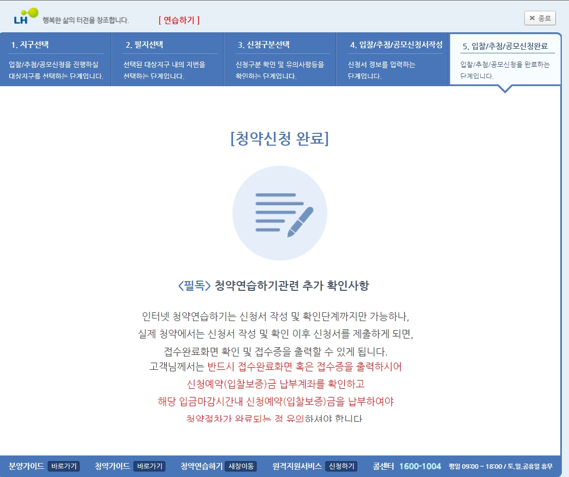 ⑤ 청약신청 완료 확인(청약신청을 완료하는 단계)