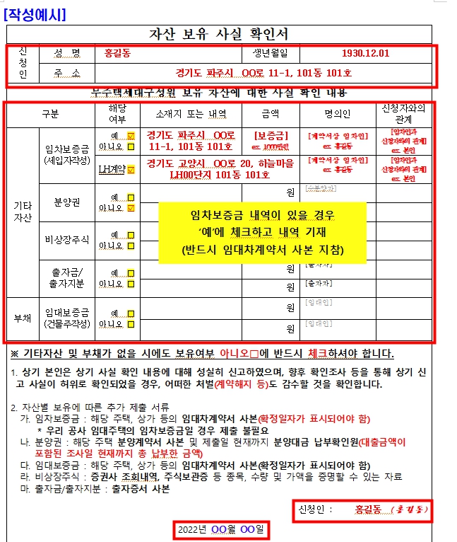 저 같은 경우에는 자산보유사실과 서명쓰는 란을 헷갈렸었는데,