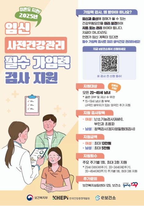 2025년부터는 20세에서 49세까지의 남녀가 결혼 여부와 자녀 수에 관계없이 가임력 검사를 받을 수 있어요. 이 제도는 생식 건강을 관리하고, 아이를 계획하는 데 필요한 정보를 제공하기 위해 마련된 거예요.
