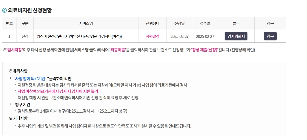 임신 사전 건강관리 신청서를 올리면 , 보건소에서 승인이 떨어진 후