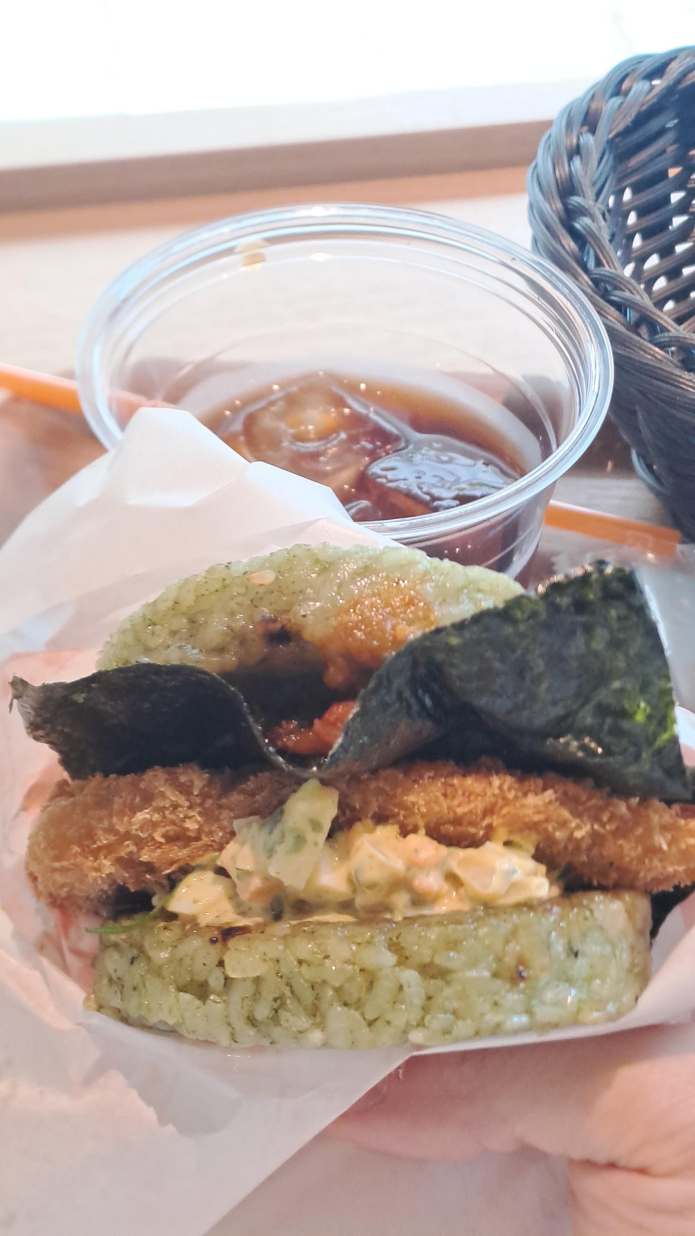 아침 조식 선택하면 밥버거를 주는데 그중에 명란계란 밥이 맛있었다.