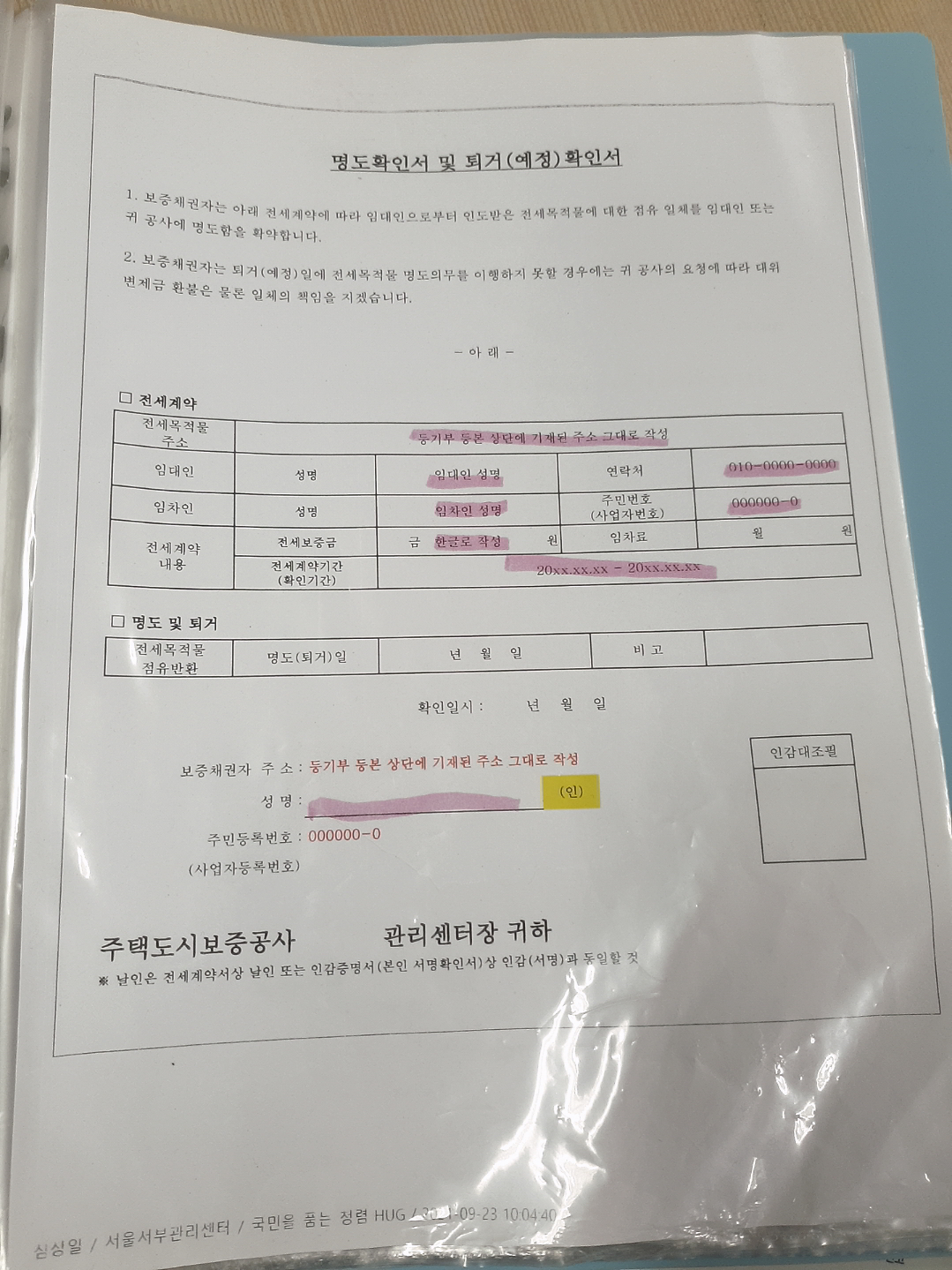 명도확인서 및 퇴거 확인서 작성예시 7)