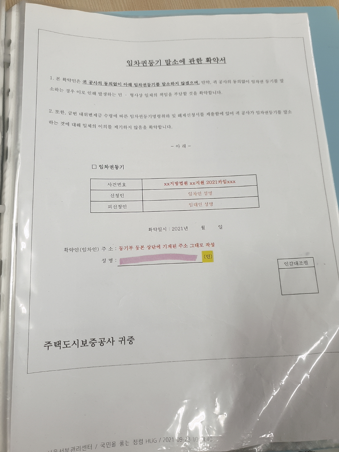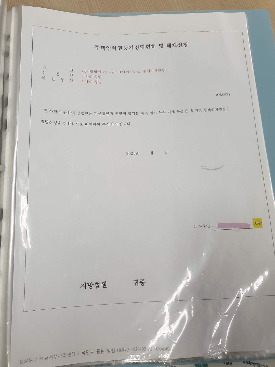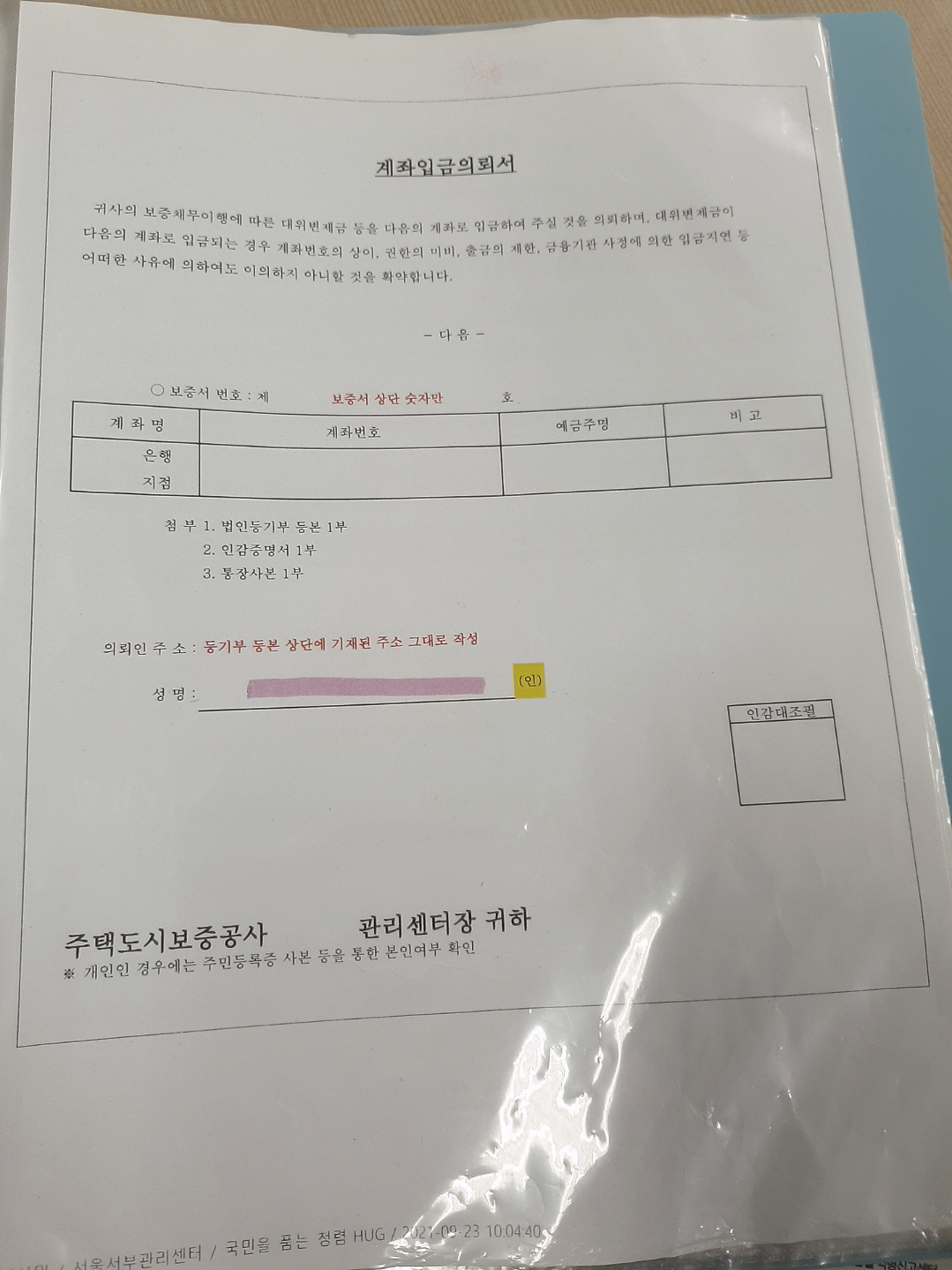 서부 관리센터에 방문 후 서류는 잘 작성되었지만, 임차권등기명령신청이 법원에서 승인이 떨어진 후