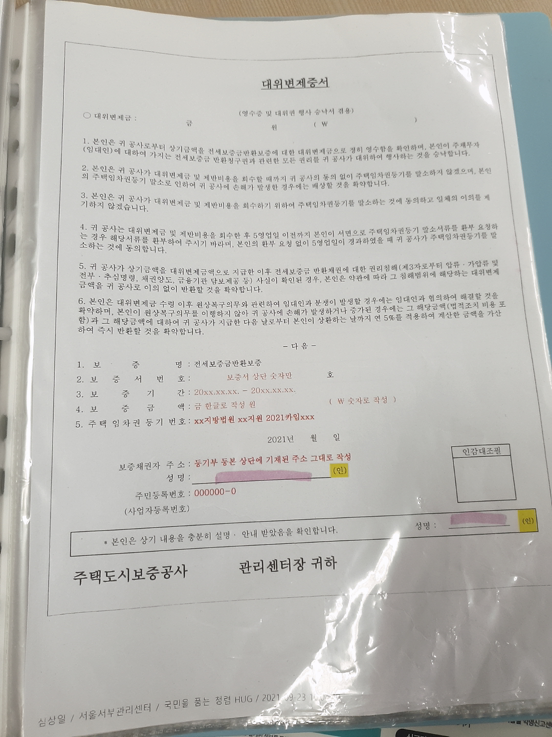 대위 변제증서 작성예시 8)