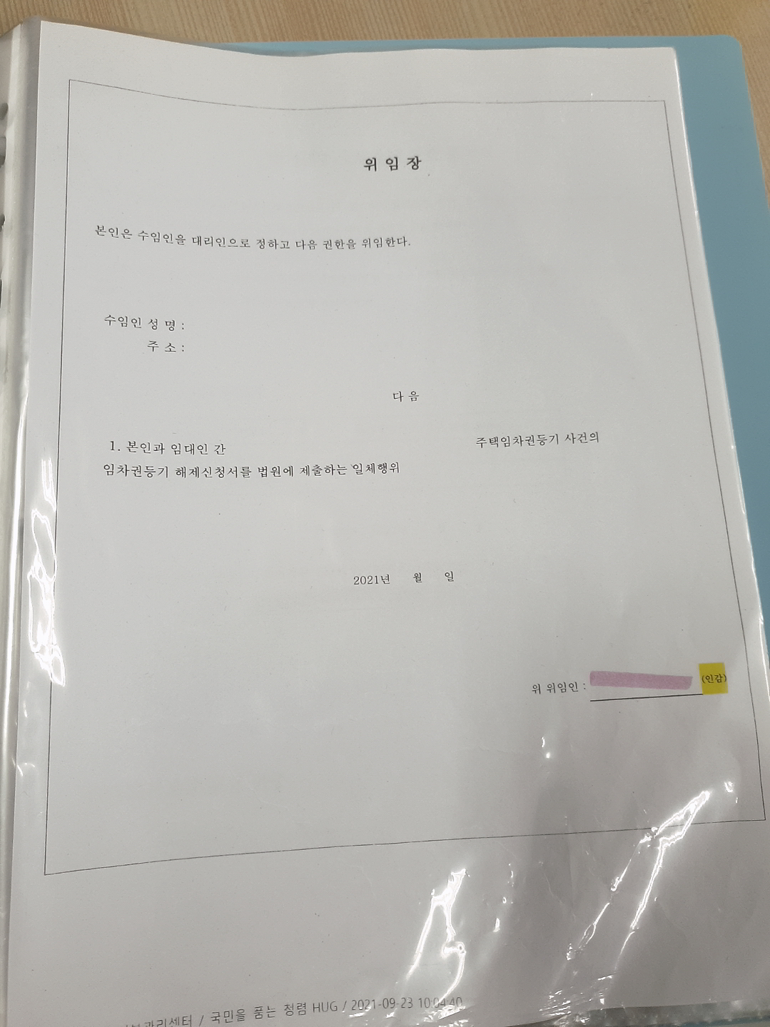 위임장 작성예시 5)